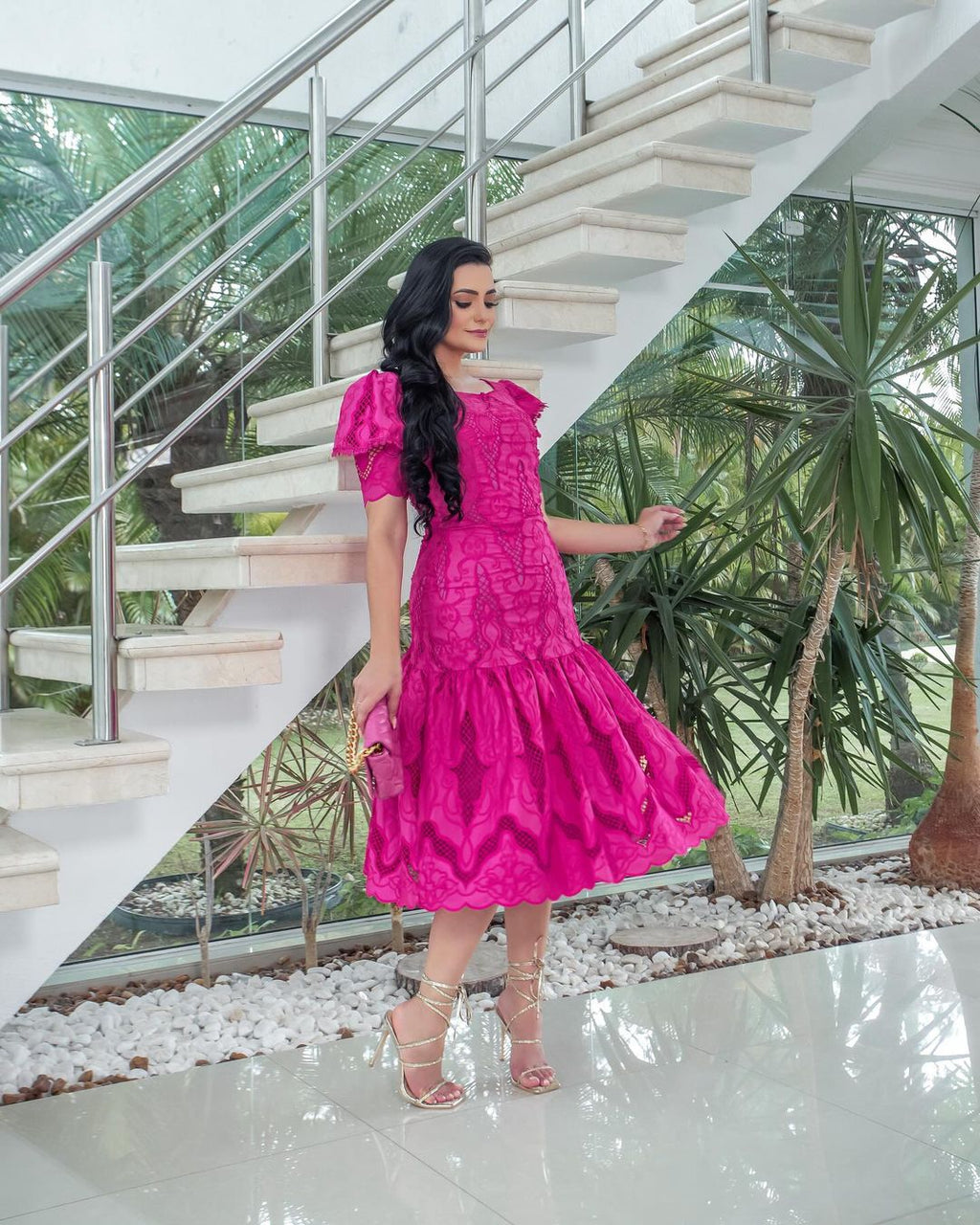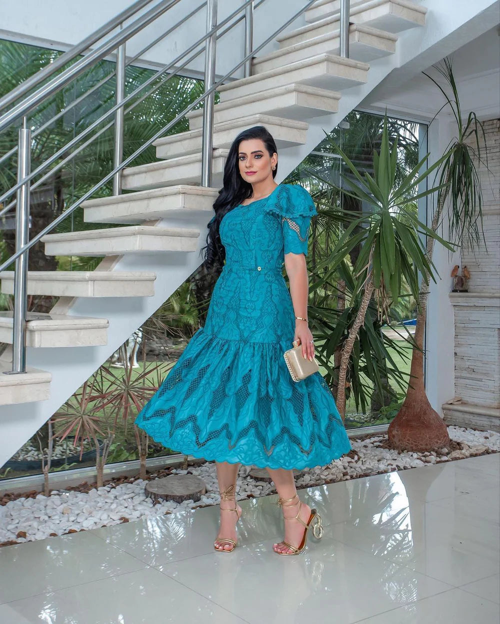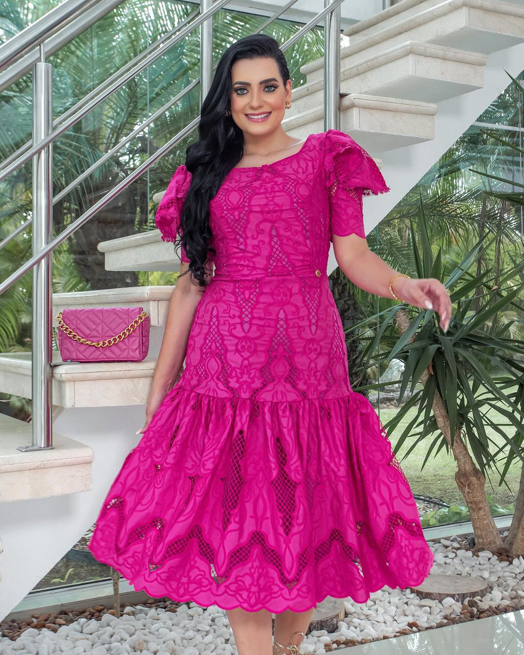 Feito com tecido Laise 100% algodão, este vestido oferece leveza e frescor para os dias mais quentes.